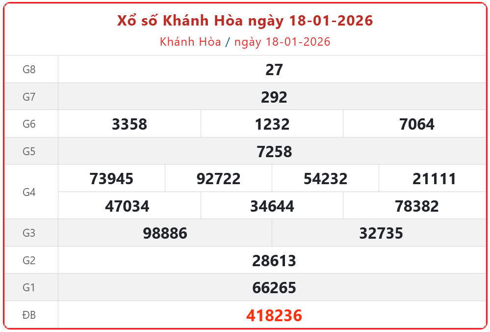 - XSKH 18/1, kết quả xổ số Khánh Hòa ngày 18/1/2026
