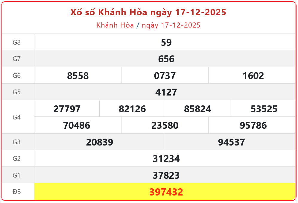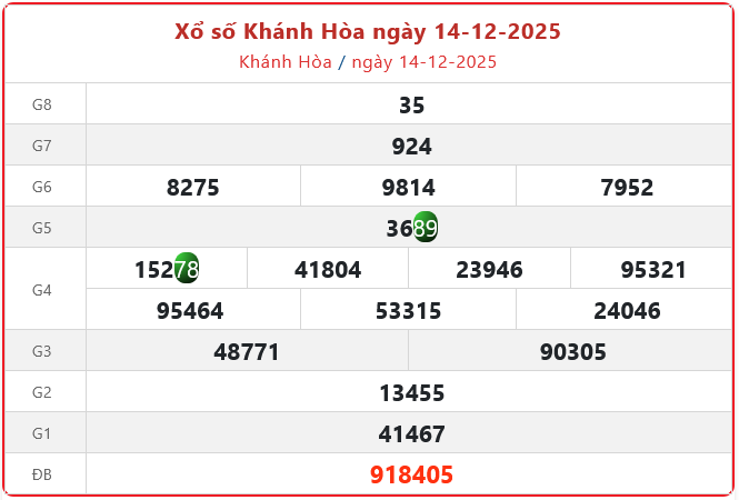 Theo dõi kết quả xổ số Khánh Hòa hôm nay 21/12/2025 trên LDG để cập nhật kết quả nhanh và chính xác nhất.