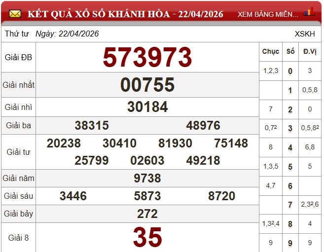XSKH 26/4. Kết quả xổ số hôm nay ngày 26/4. Trực tiếp KQXSKH ngày 26/4. KQXSKH 26/4. Kết quả xổ số Khánh Hòa hôm nay ngày 26/4/2026.