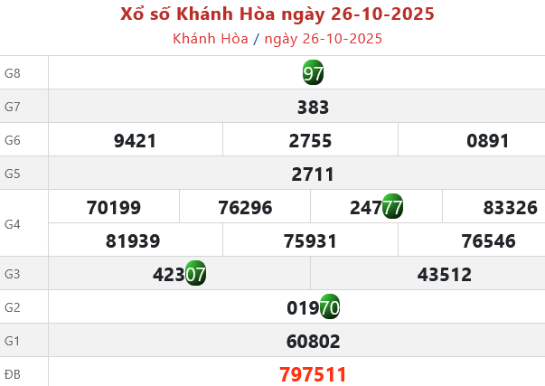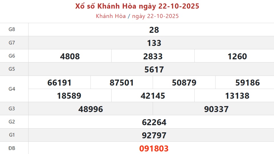 Theo dõi kết quả xổ số Khánh Hòa hôm nay 29/10/2025 trên LDG để cập nhật kết quả nhanh và chính xác nhất.