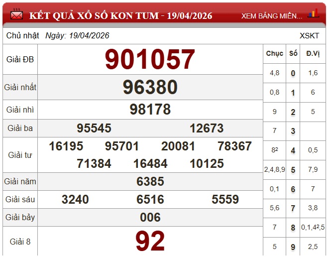 Trực tiếp Kết quả xổ số Kon Tum hôm nay - Kết quả XSKT 26/4 - XSKT hôm nay chủ nhật ngày 26/4/2026 - Xổ số Kon Tum hôm nay - Trực tiếp xổ số Kon Tum hôm nay