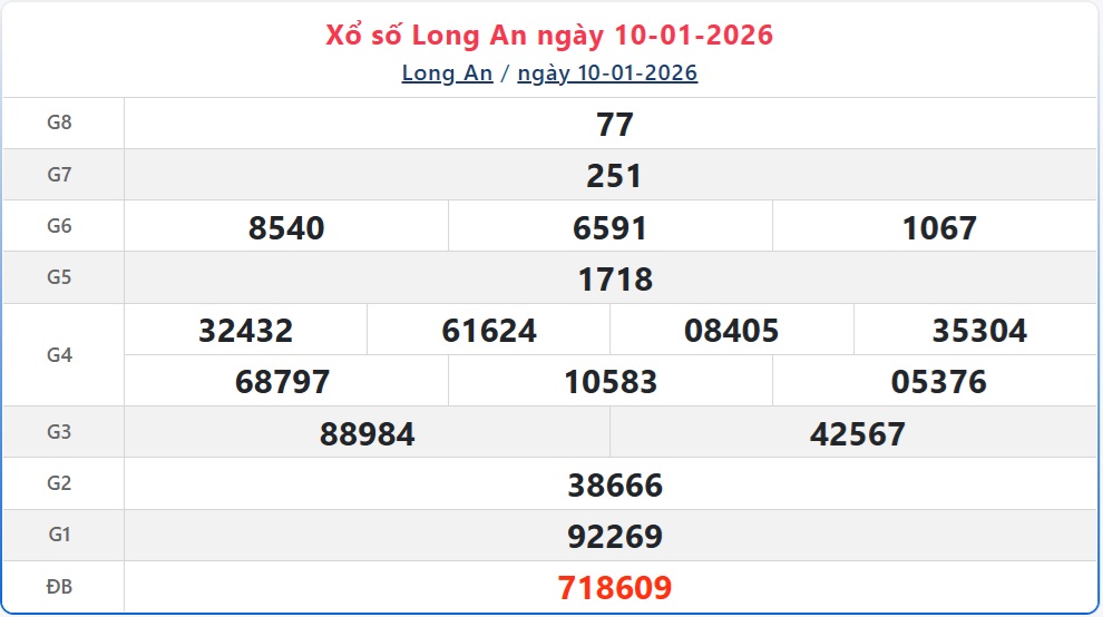 - XSLA 10/1, kết quả xổ số Long An ngày 10/1/2026