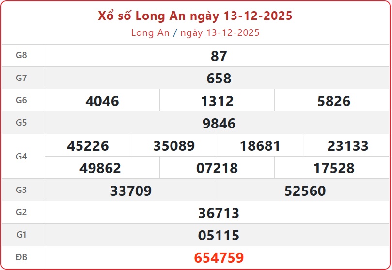 - XSLA 13/12, kết quả xổ số Long An ngày 13/12/2025