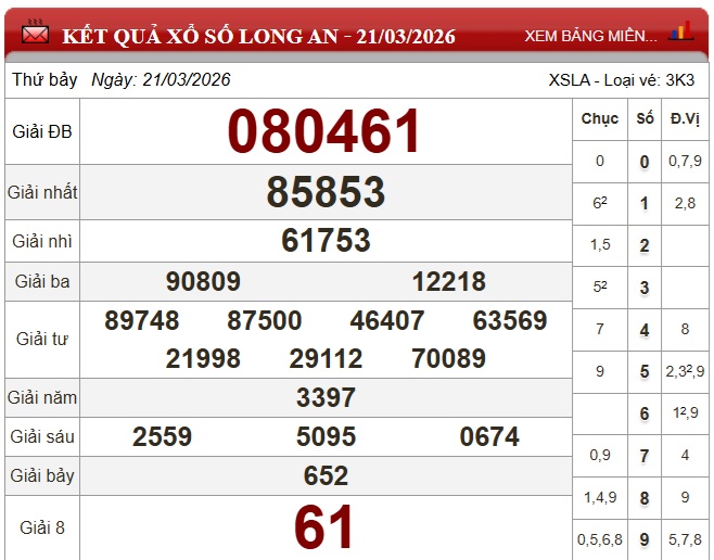 - XSLA 21/3, kết quả xổ số Long An ngày 21/3/2026