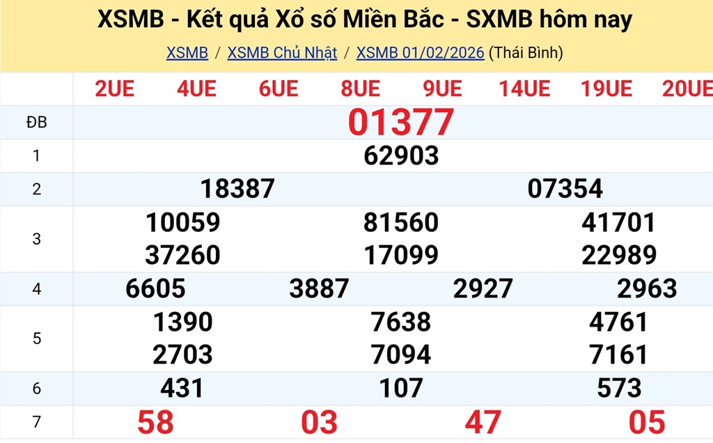 Kết quả xổ số miền Bắc (XSMB) hôm nay ngày 01/02