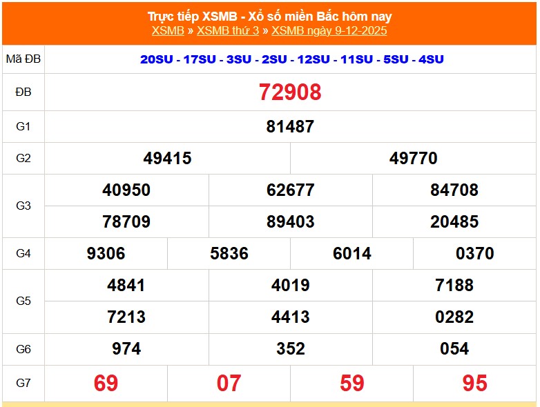 Cập nhật Kết quả xổ số miền Bắc hôm nay 09/12/2025 - XSMB 09/12/2025 nhanh nhất và chính xác nhất tới quý độc giả.