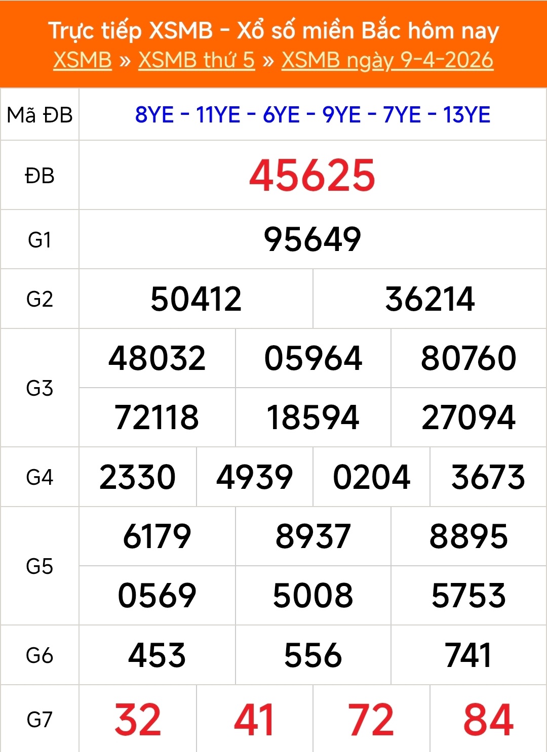 Kết quả xổ số miền Bắc (XSMB) hôm nay ngày 9/4