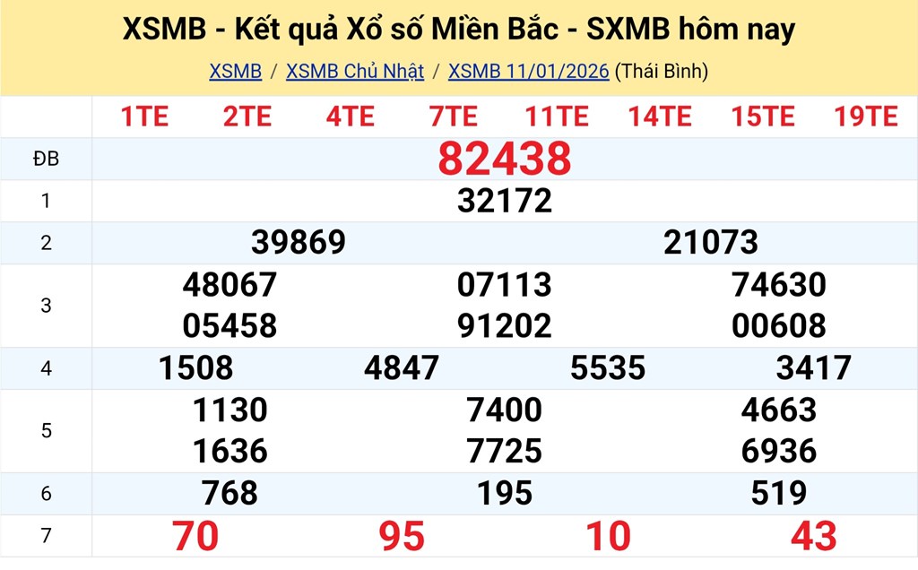 Kết quả Xổ số miền Bắc ngày 11/1/2026