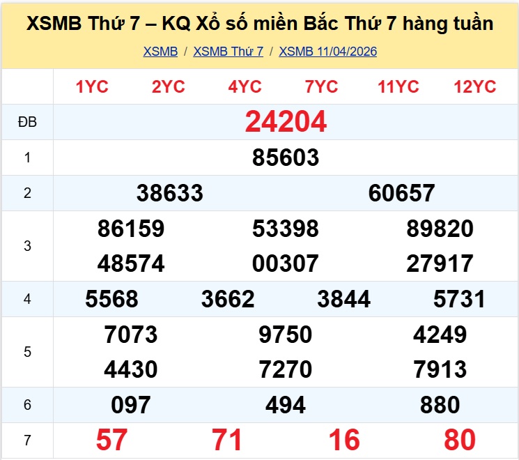 Kết quả Xổ số miền Bắc ngày 11/4/2026