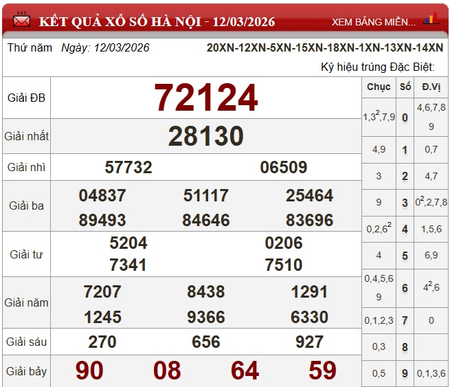 Kết quả Xổ số miền Bắc ngày 12/3/2026