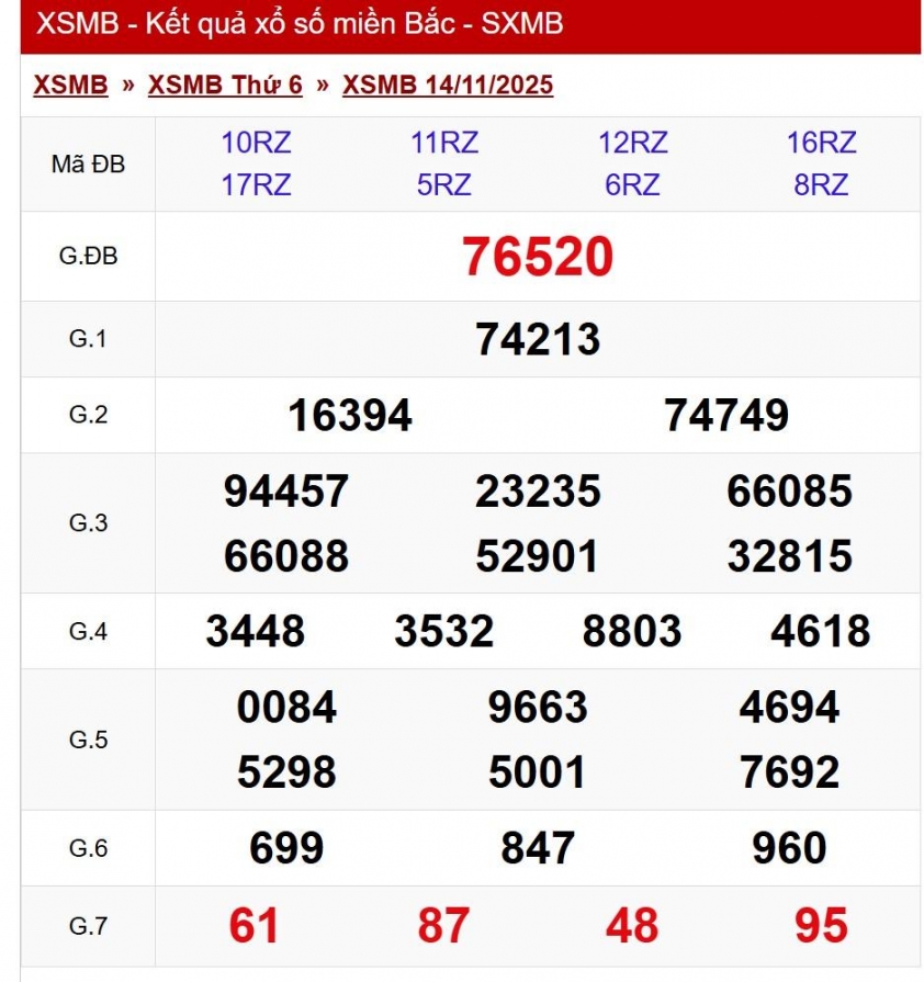 Cập nhật Kết quả xổ số miền Bắc hôm nay 16/11/2025 - XSMB 16/11/2025 nhanh nhất và chính xác nhất.
