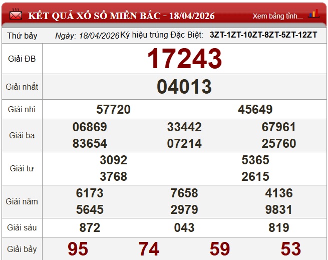 Kết quả xổ số miền Bắc (XSMB) hôm nay ngày 17/4