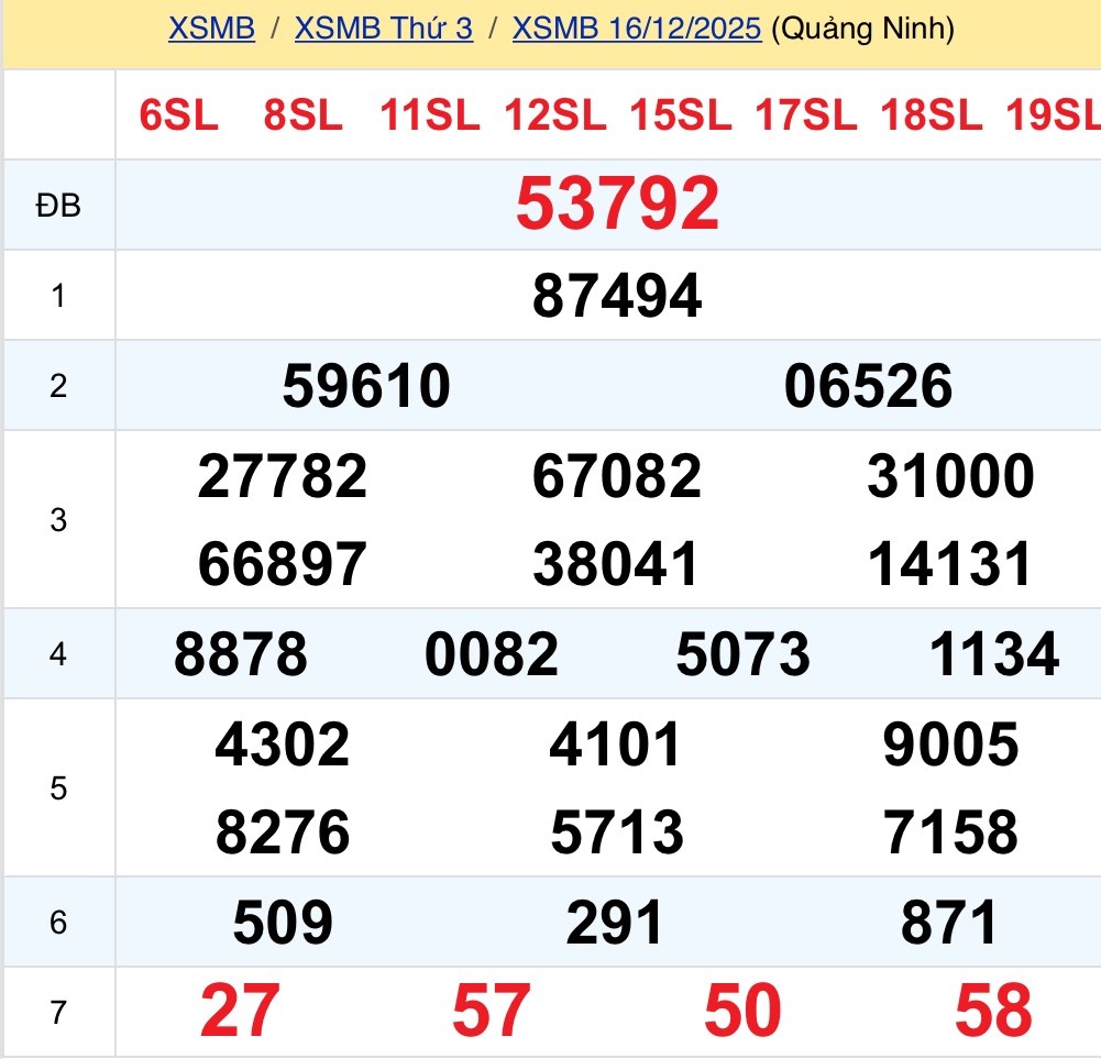 Kết quả Xổ số miền Bắc ngày 16/12/2025