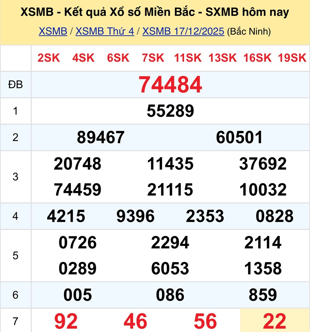 Kết quả Xổ số miền Bắc ngày 17/12/2025