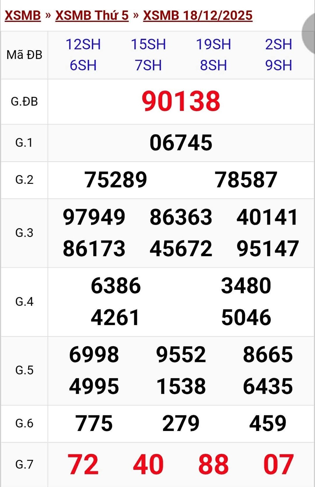 Kết quả Xổ số miền Bắc ngày 18/12/2025