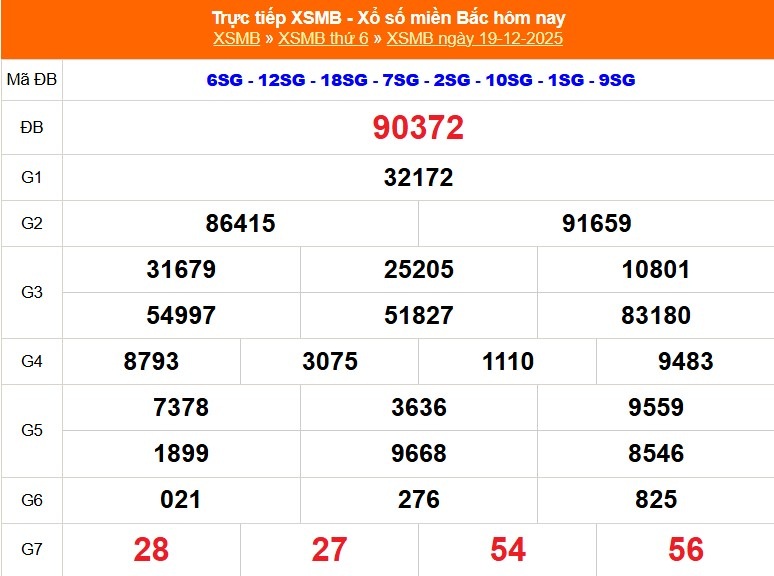 Kết quả Xổ số miền Bắc ngày 19/12/2025