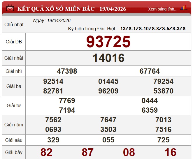 Kết quả xổ số miền Bắc (XSMB) hôm nay ngày 19/4