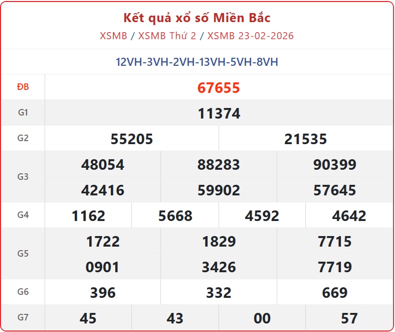 Kết quả Xổ số miền Bắc ngày 23/2/2026
