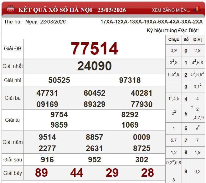 Kết quả Xổ số miền Bắc ngày 23/3/2026