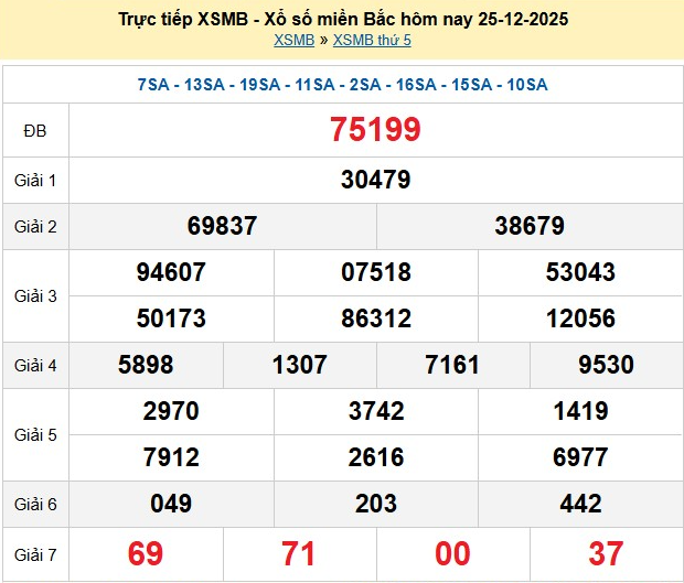 Kết quả Xổ số miền Bắc ngày 25/12/2025