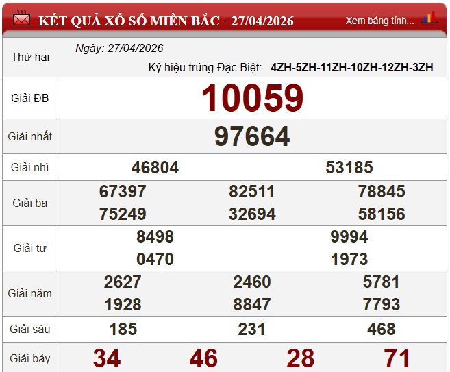 Kết quả Xổ số miền Bắc ngày 27/4/2026