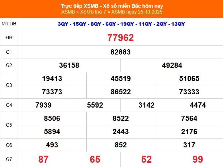 Kết quả Xổ số miền Bắc ngày 25/10/2025