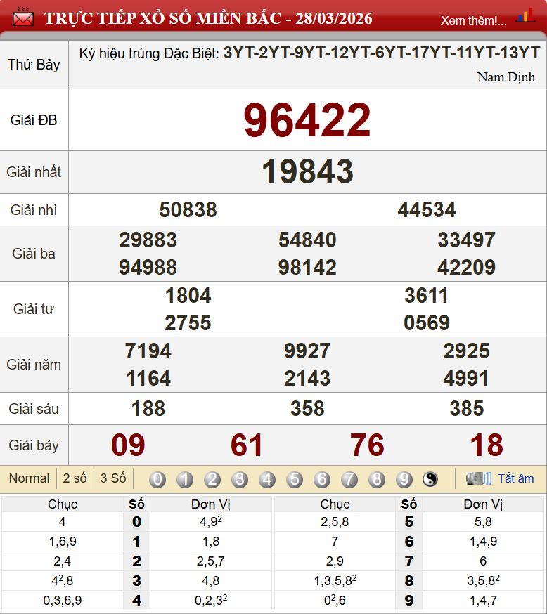 Kết quả Xổ số miền Bắc ngày 28/3/2026