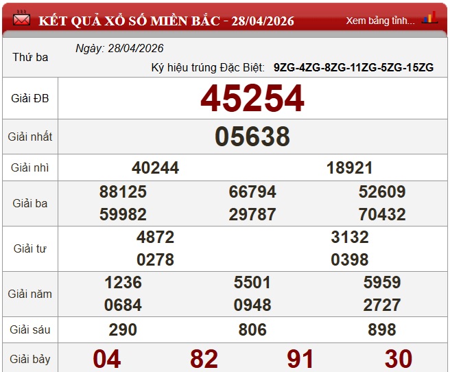 Kết quả Xổ số miền Bắc ngày 28/4/2026