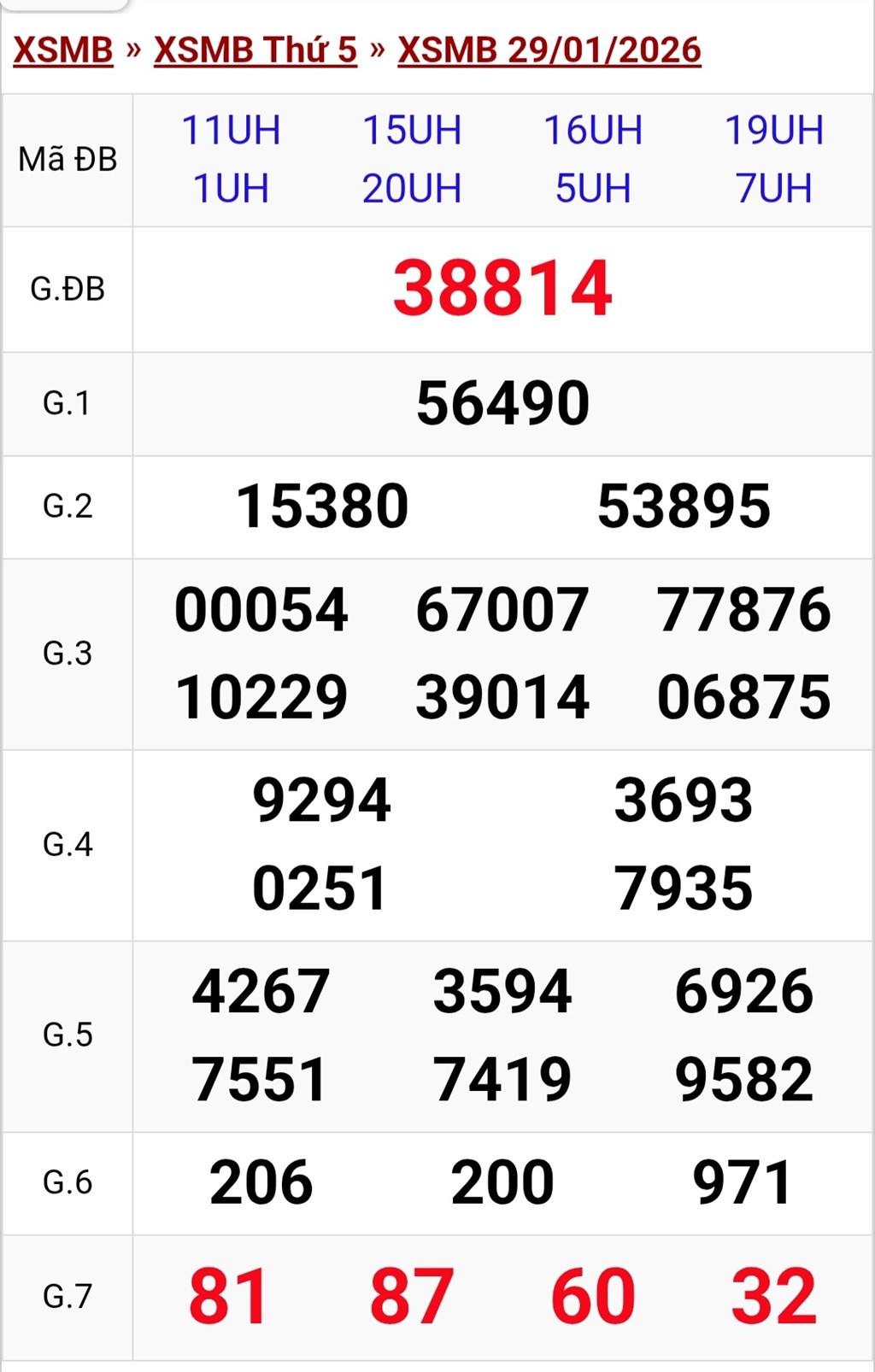 Kết quả Xổ số miền Bắc ngày 29/1/2026