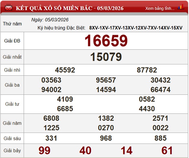 Kết quả Xổ số miền Bắc ngày 5/3/2026