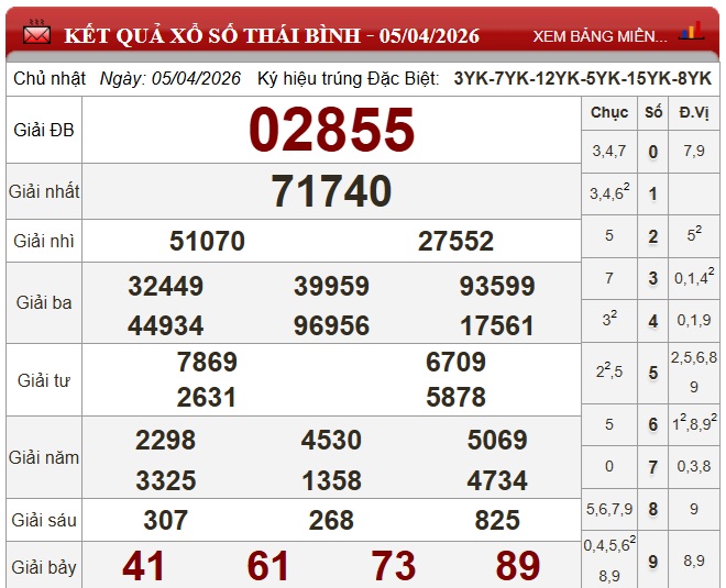 Kết quả xổ số miền Bắc (XSMB) hôm nay ngày 5/4