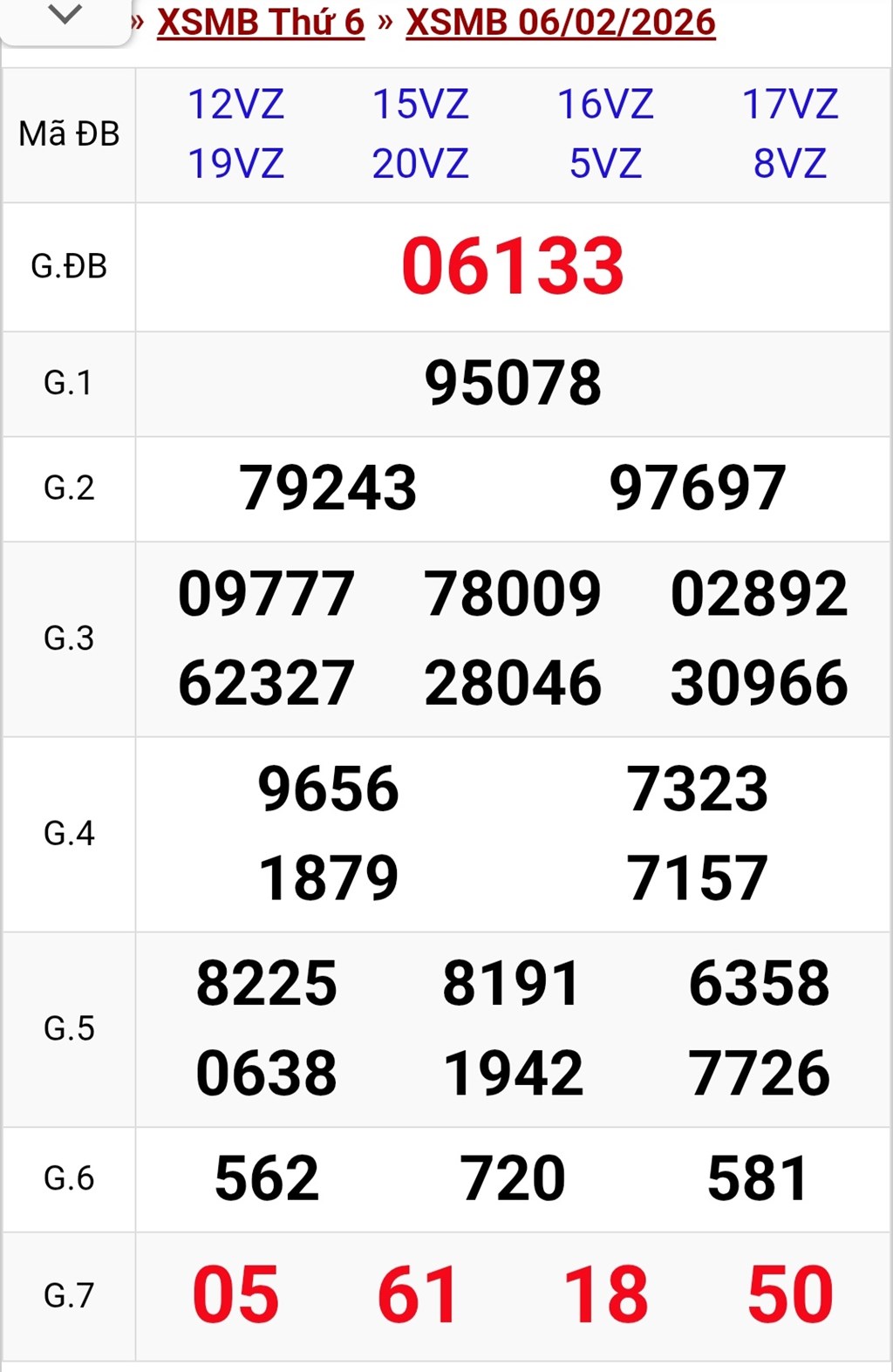Kết quả Xổ số miền Bắc ngày 6/2/2026