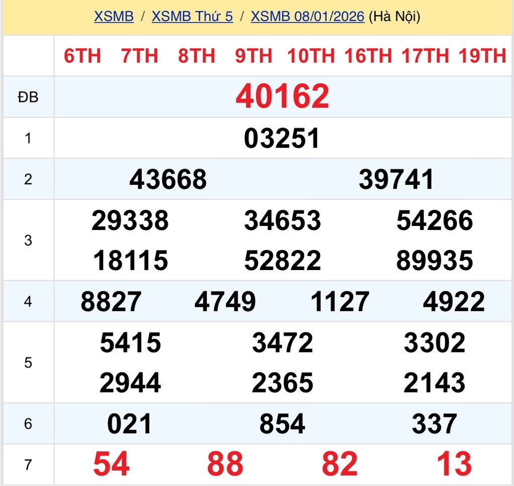 Kết quả Xổ số miền Bắc ngày 8/1/2026