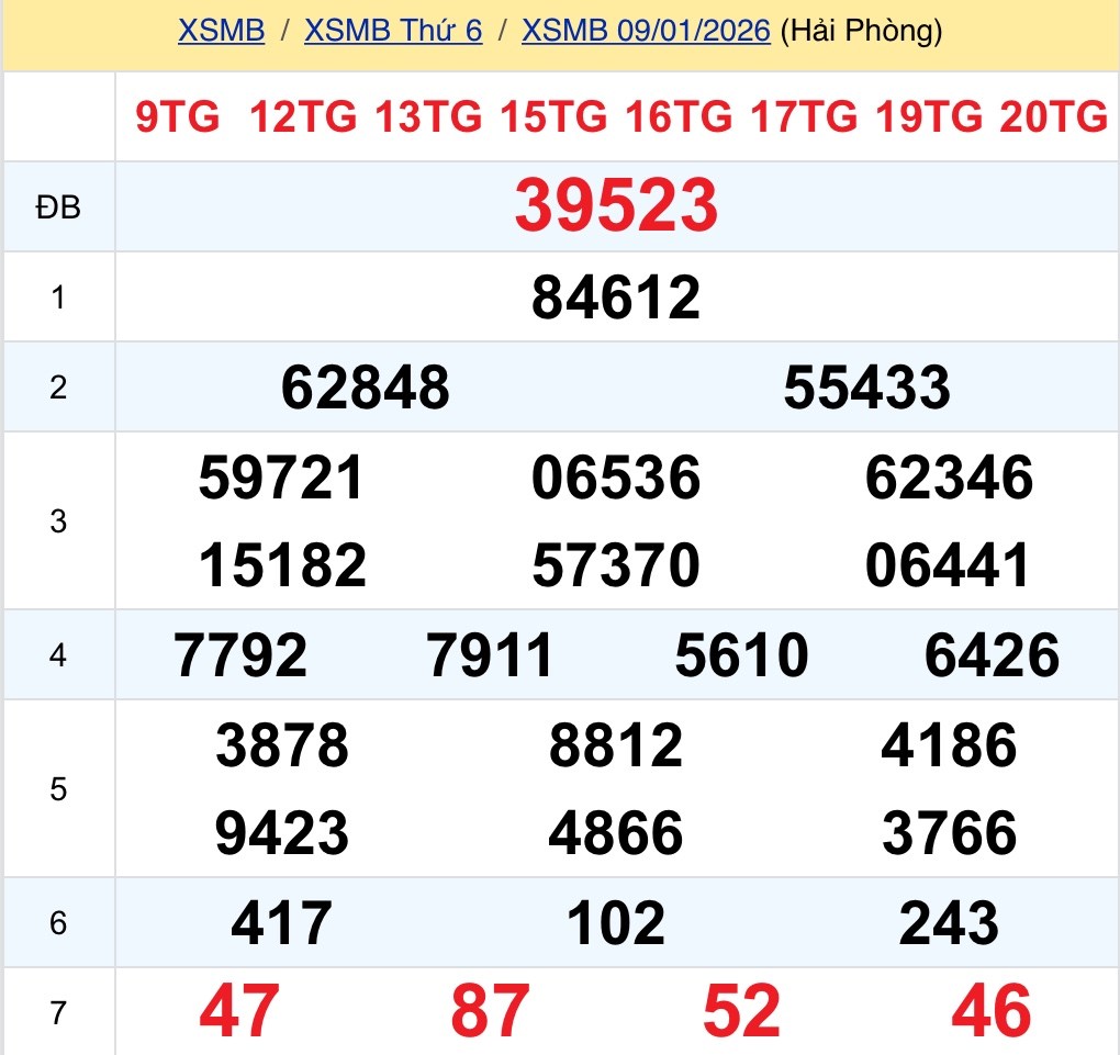 Trực Tiếp kết quả xổ số miền Bắc 9/1/2026 - XSMB 9/1