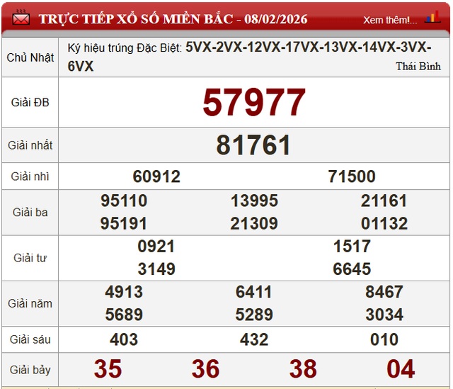 Trực Tiếp kết quả xổ số miền Bắc 9/2/2026 - XSMB 9/2