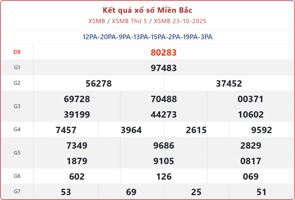 Kết quả xổ số miền Bắc ngày 23/10/2025. KQXSMB 23/10
