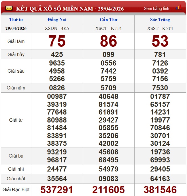 Kết quả xổ số miền Nam (XSMN) ngày 29/4