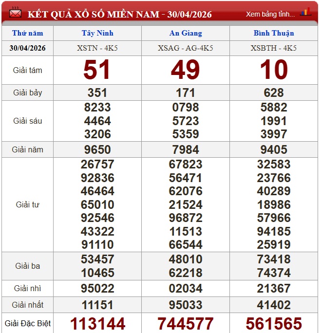 Kết quả xổ số miền Nam (XSMN) ngày 30/4