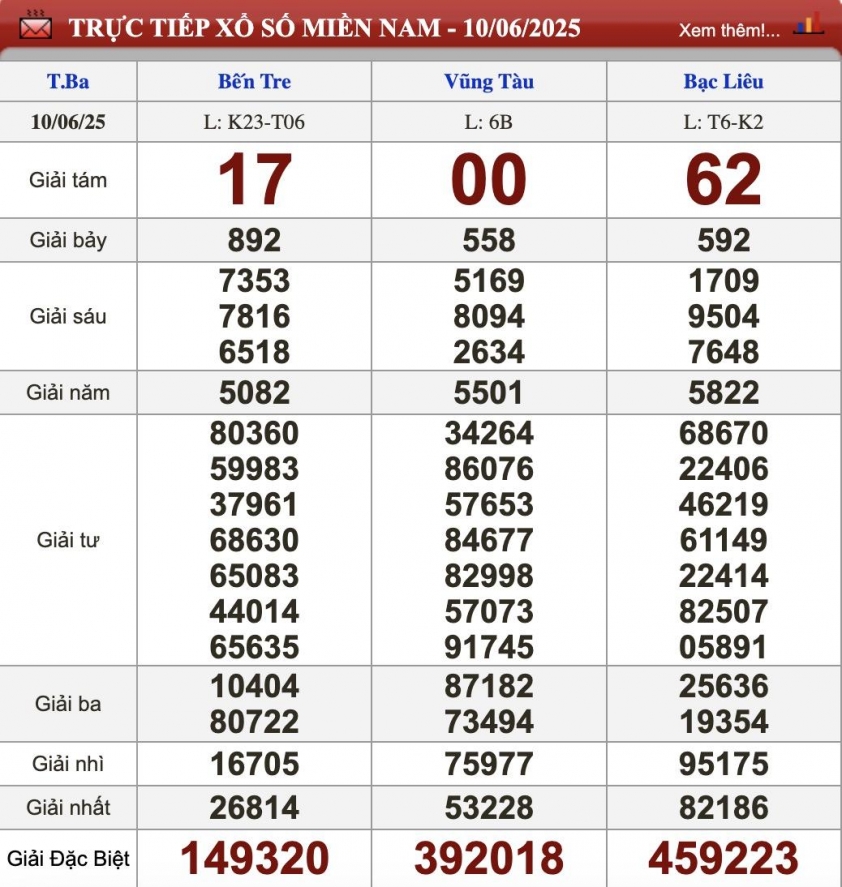 Cập nhật Kết quả xổ số miền Nam hôm nay 10/6/2025 - XSMN 10/6/2025 nhanh nhất và chính xác nhất tới quý độc giả.