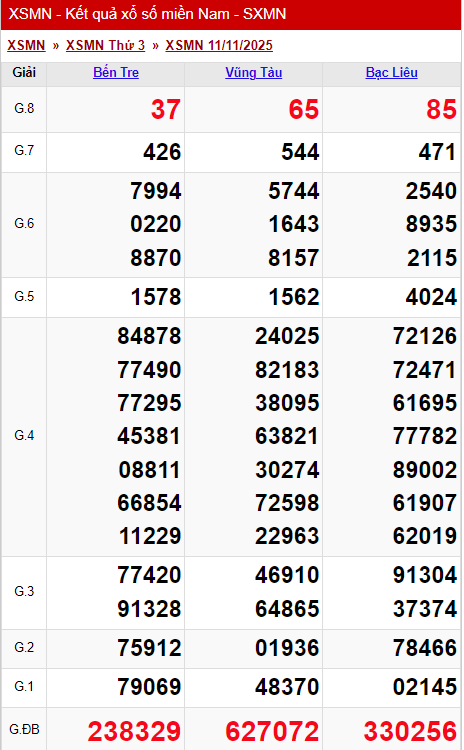 Kết quả xổ số miền Nam ngày 11/11/2025