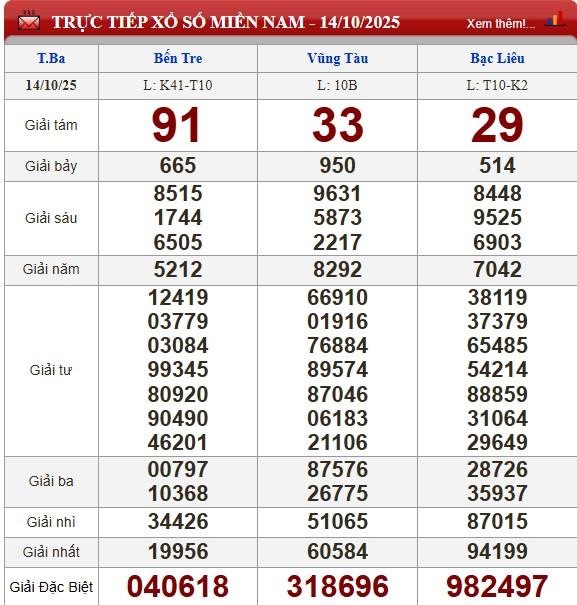 Kết quả xổ số miền Nam (XSMN) hôm nay ngày 14/10