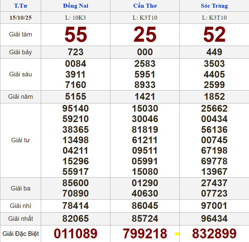 - Thứ Tư: Đồng Nai - Cần Thơ - Sóc Trăng