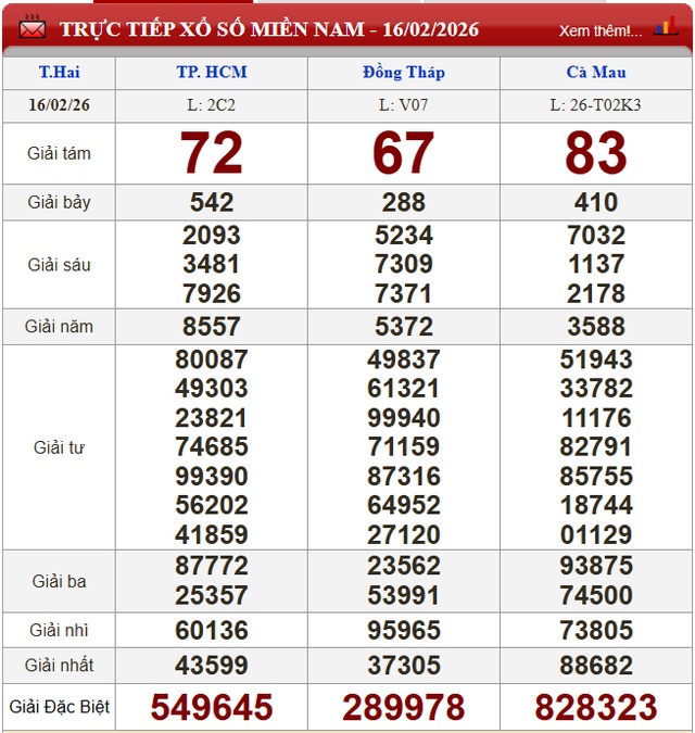 Kết quả xổ số miền Nam (XSMN) ngày 16/02