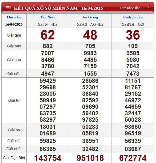 Kết quả xổ số miền Nam (XSMN) ngày 16/4