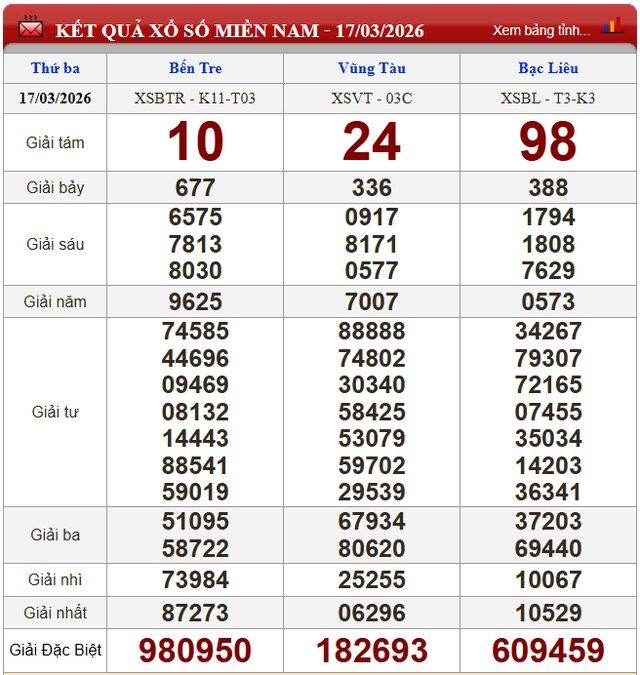 Kết quả xổ số miền Nam ngày 17/3/2026