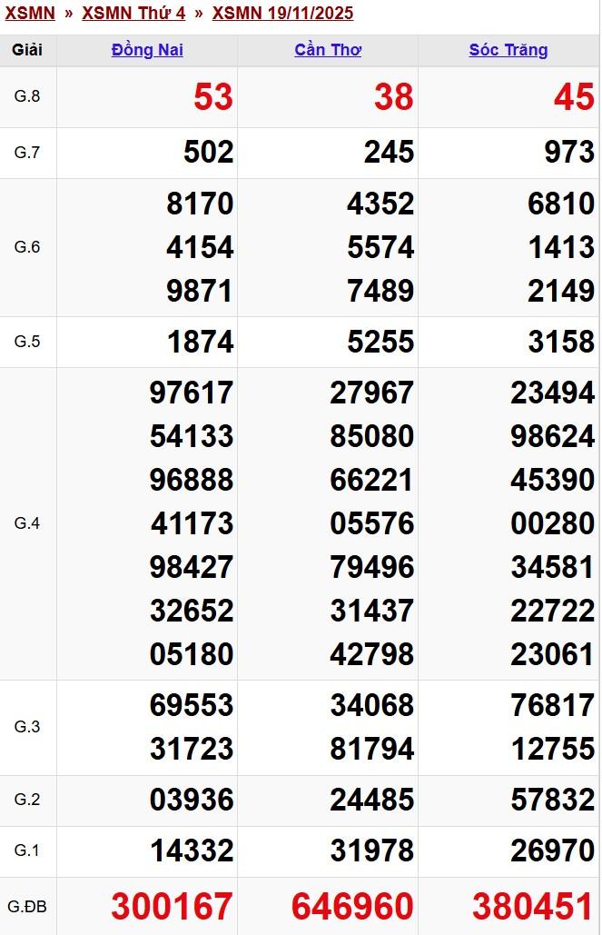 Kết quả xổ số miền Nam ngày 19/11/2025. KQXSMN 19/11