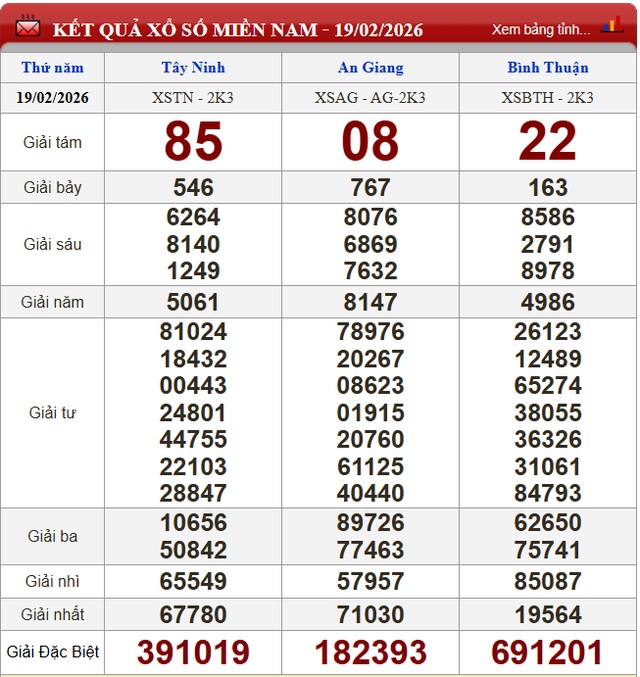 Kết quả xổ số miền Nam (XSMN) ngày 19/02