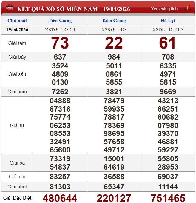 Kết quả xổ số miền Nam (XSMN) hôm nay ngày 19/4