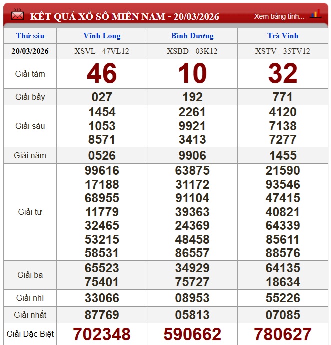 Kết quả xổ số miền Nam (XSMN) ngày 20/3