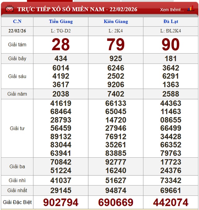 Kết quả xổ số miền Nam ngày 22/2/2026